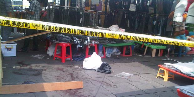 JAKARTA, KOMPAS.com - Terjadi pembunuhan di Taman Museum Fatahillah, Kelurahan Pinangsia, Taman Sari, Jakarta Barat, pada pukul 09.00 WIB, Rabu (15/8/2012). Korban tewas ditempat setelah mendapatkan lima tusukan di tubuhnya.